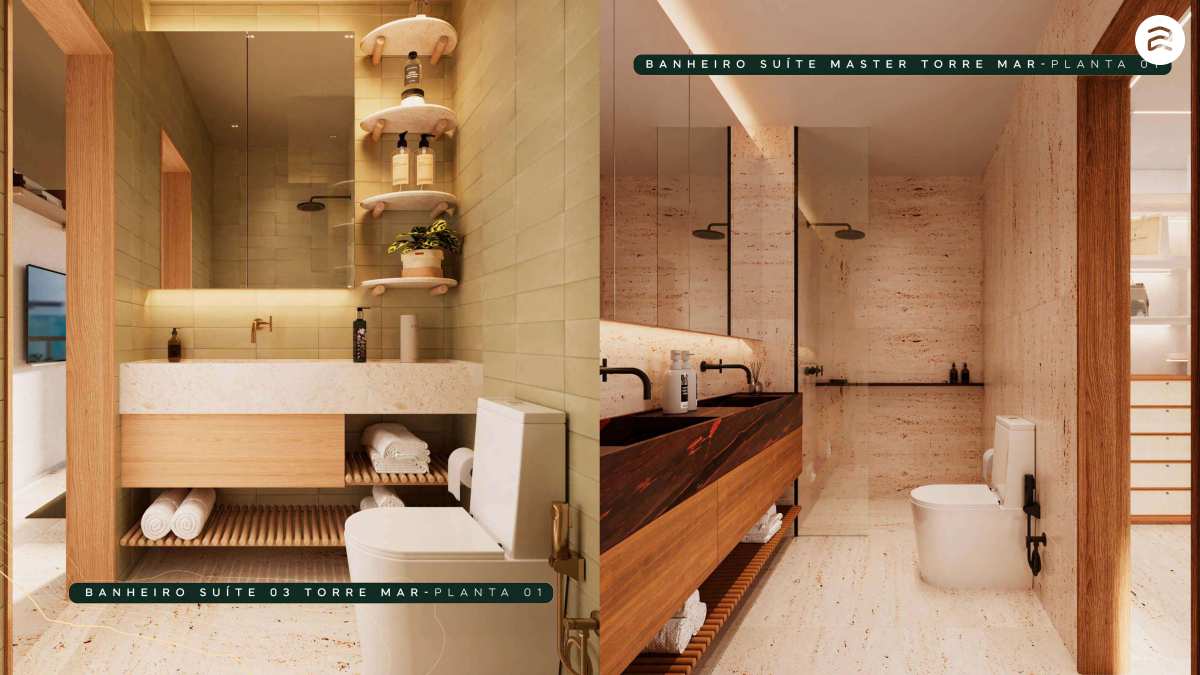 Torre Mar: 167,84m², 170,36m² e 170,85m² com 4 suítes (2 master com varanda) e 3 vagas de garagem