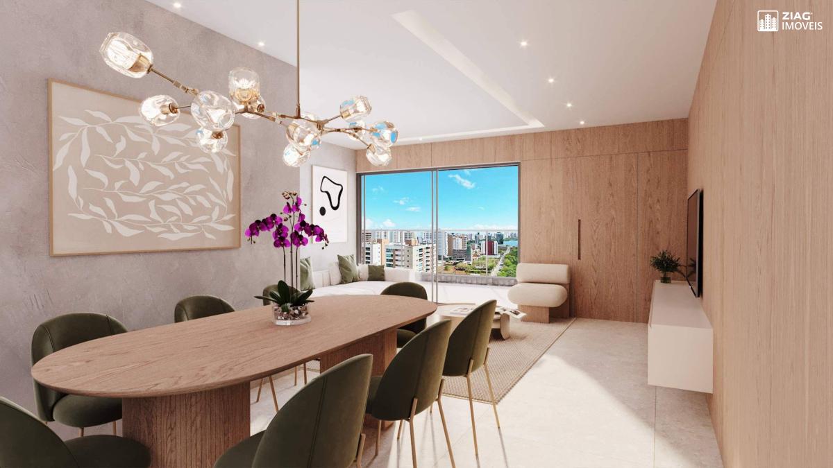 03 Suítes, incluindo 01 Suíte Master com Office 02 Varandas, sendo 01 Varanda Dupla Living, Hall Social e Lavabo Cozinha com Área de Serviço e Banheiro de Serviço Opções de upgrade disponíveis para personalização do espaço.