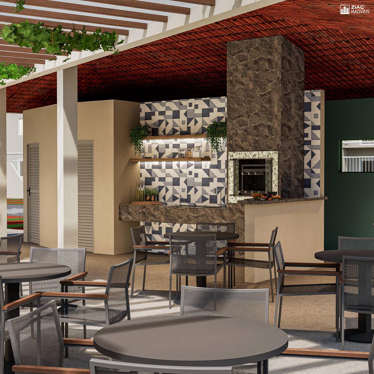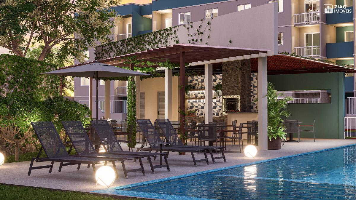 sala de administração do condomínio complementa o projeto. Apartamentos de 2 dormitórios, 44m², varanda e vaga privativa.