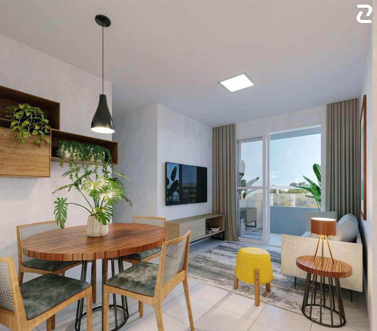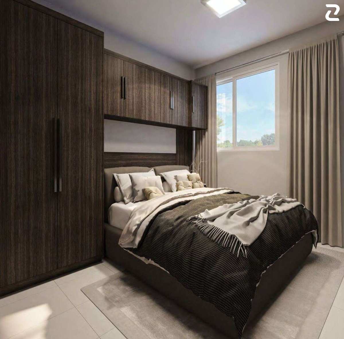 2 e 3 quartos com áreas de 49,66 os apartamentos com 2 quartos e 63,70 os apartamentos com 3 quartos sendo 1 suíte, todos com varanda. As torres possuem elevadores e a fachada é no estilo moderno (platibanda), onde o telhado não é aparente.